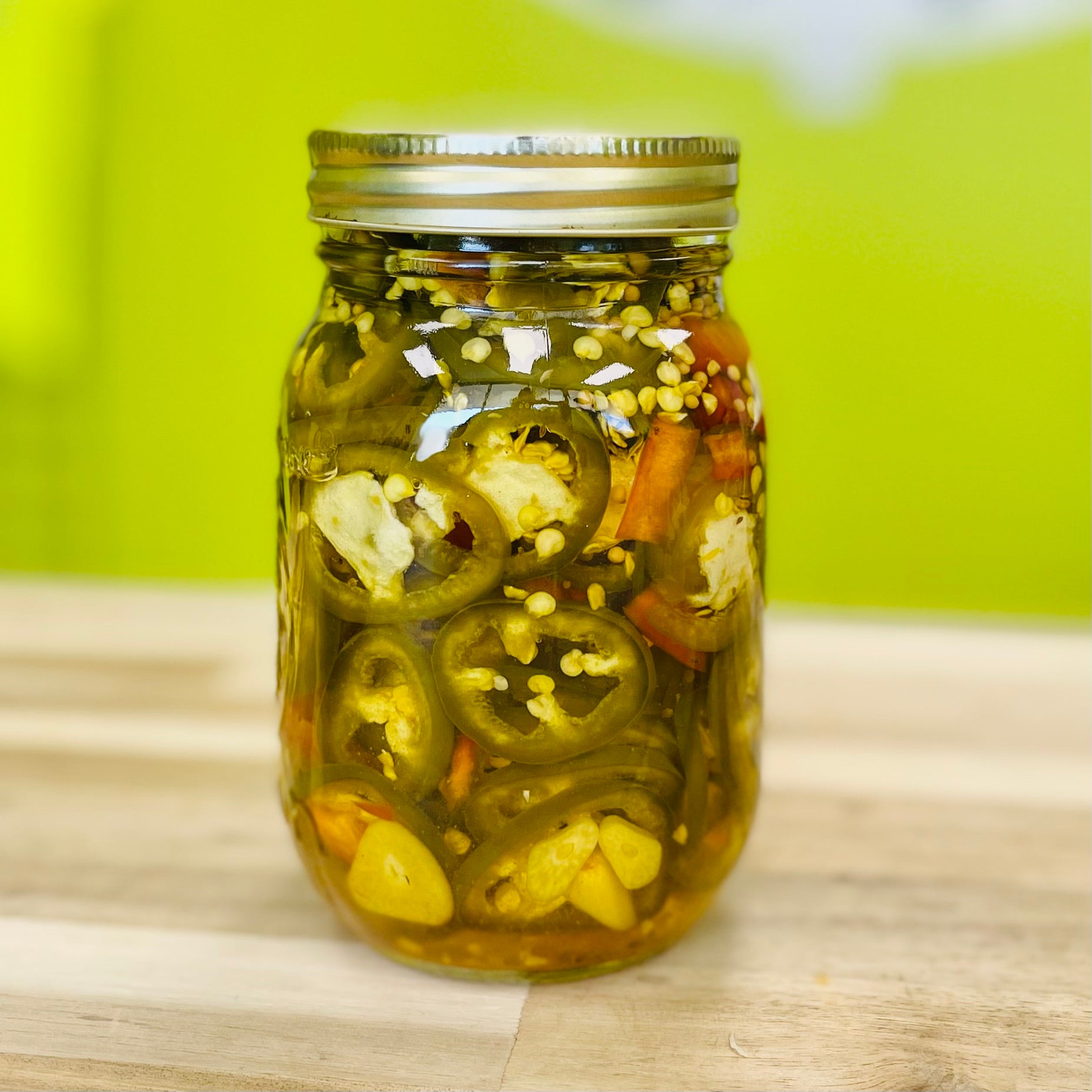 Super Sweet and Hot sliced Candied Jalapenos. Perfect for snacking or serve it over cream cheese