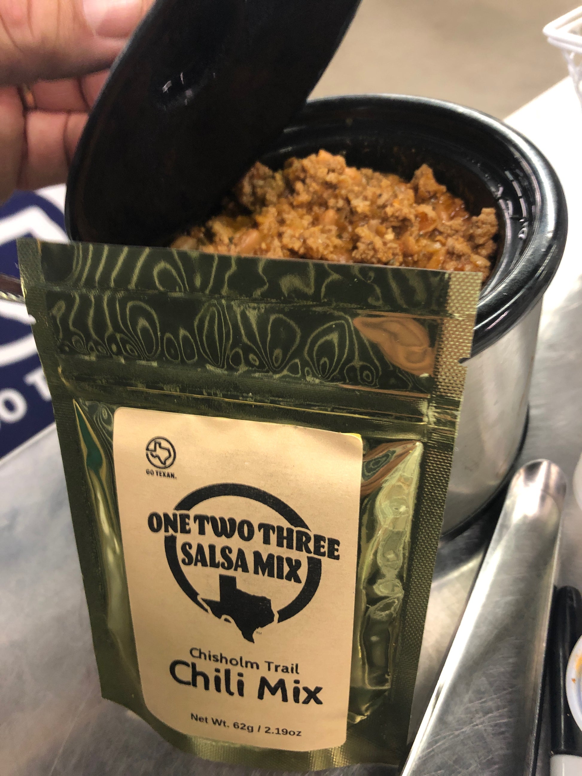 Just add to 2lbs of browned ground beef and 2 cups of water. Simmer it down a little and that’s it. Best chili in Texas.
